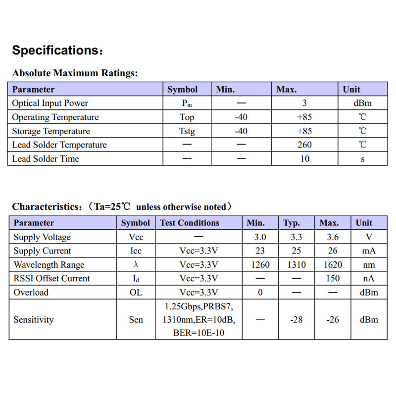 1.25Gbps PIN-TIA 1310nm TO-CAN Series photodiode